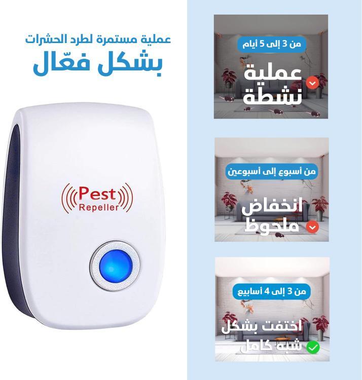 ابقَ منزلك ومكتبك خاليين من الحشرات مع جهاز الطارد بالموجات فوق الصوتية، الحل الآمن والفعال لطرد الصراصير، البعوض والقوارض الصغيرة دون استخدام مواد كيميائية.