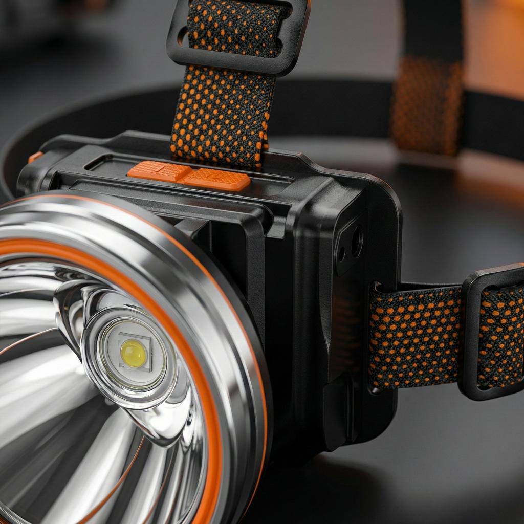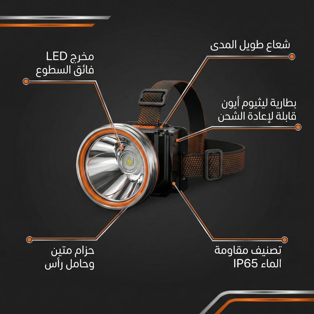 ستمتع بإضاءة قوية وطويلة المدى مع كشاف الرأس LED القابل للشحن، المصمم للاستخدام في الأنشطة الليلية مثل الصيد، التخييم، أو العمل في الأماكن المظلمة مثل المناجم.