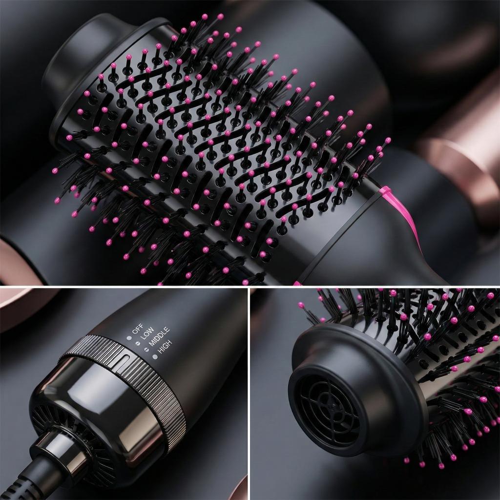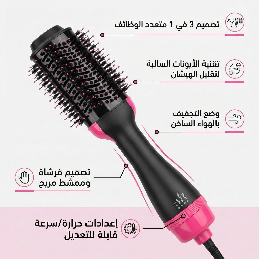 احصلي على تصفيف احترافي من المنزل مع مجفف الشعر الكهربائي متعدد الوظائف 3 في 1، المصمم ليجمع بين التجفيف، التمليس، والتصفيف في خطوة واحدة فقط. بفضل تقنية الهواء الساخن المدعومة بالأيونات السالبة، يساعد الجهاز على تقليل الهيشان والكهرباء الساكنة، ليمنحك شعراً ناعماً ولامعاً بمظهر صحي وجذاب.
